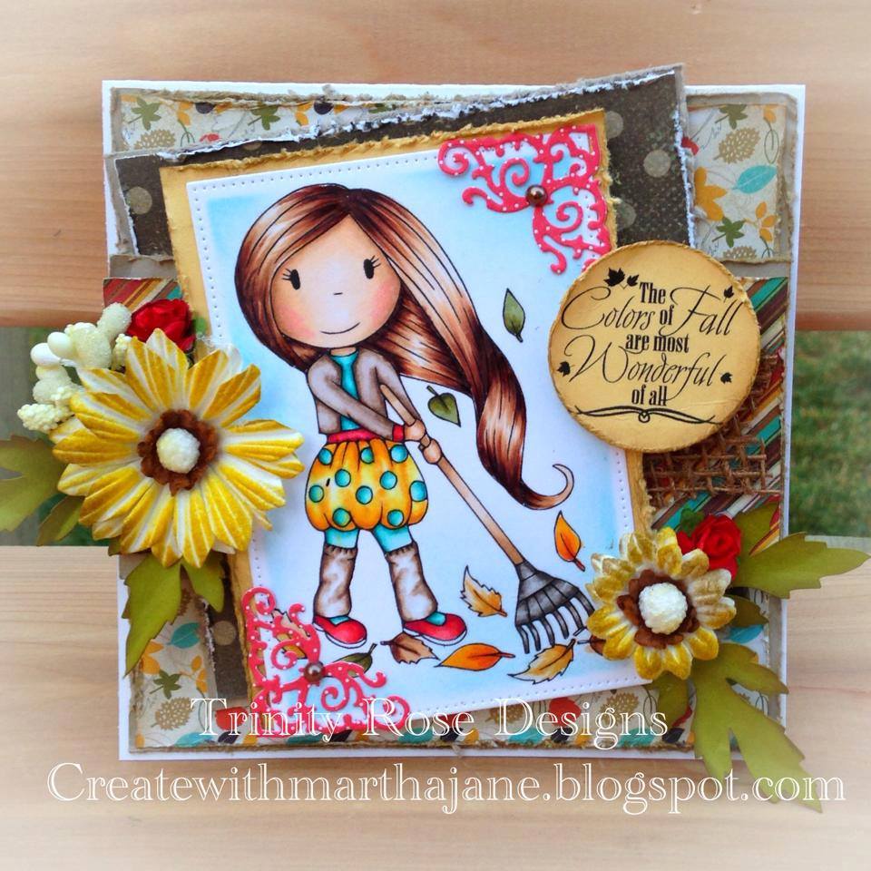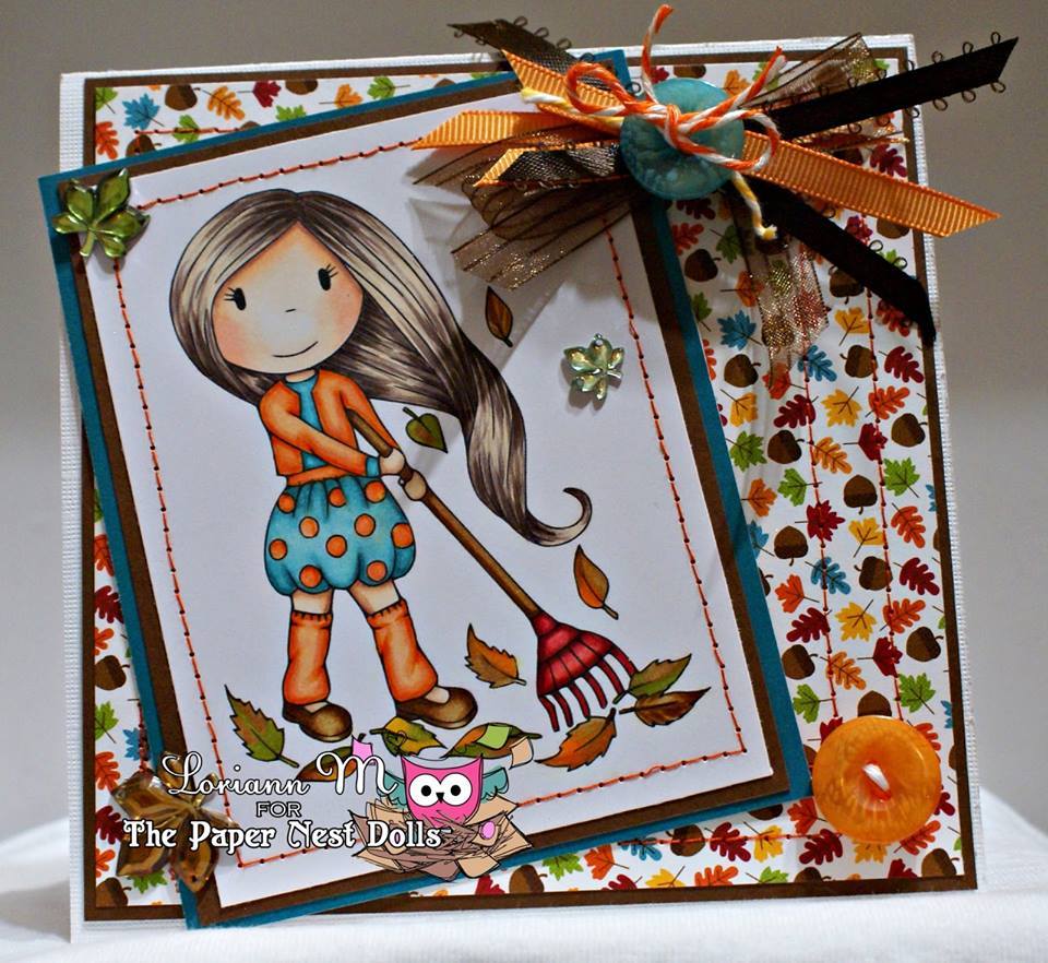 Paper Nest Dolls "Raking Leaves Avery" Rubber Stamp